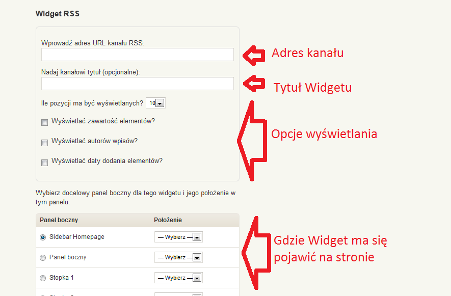 Wordpress ma to do siebie, że takie rzeczy jak czytniki RSS obsługuje poprzez „Widgety”. Widgedy są sterowane z poziomu „Kokpitu.